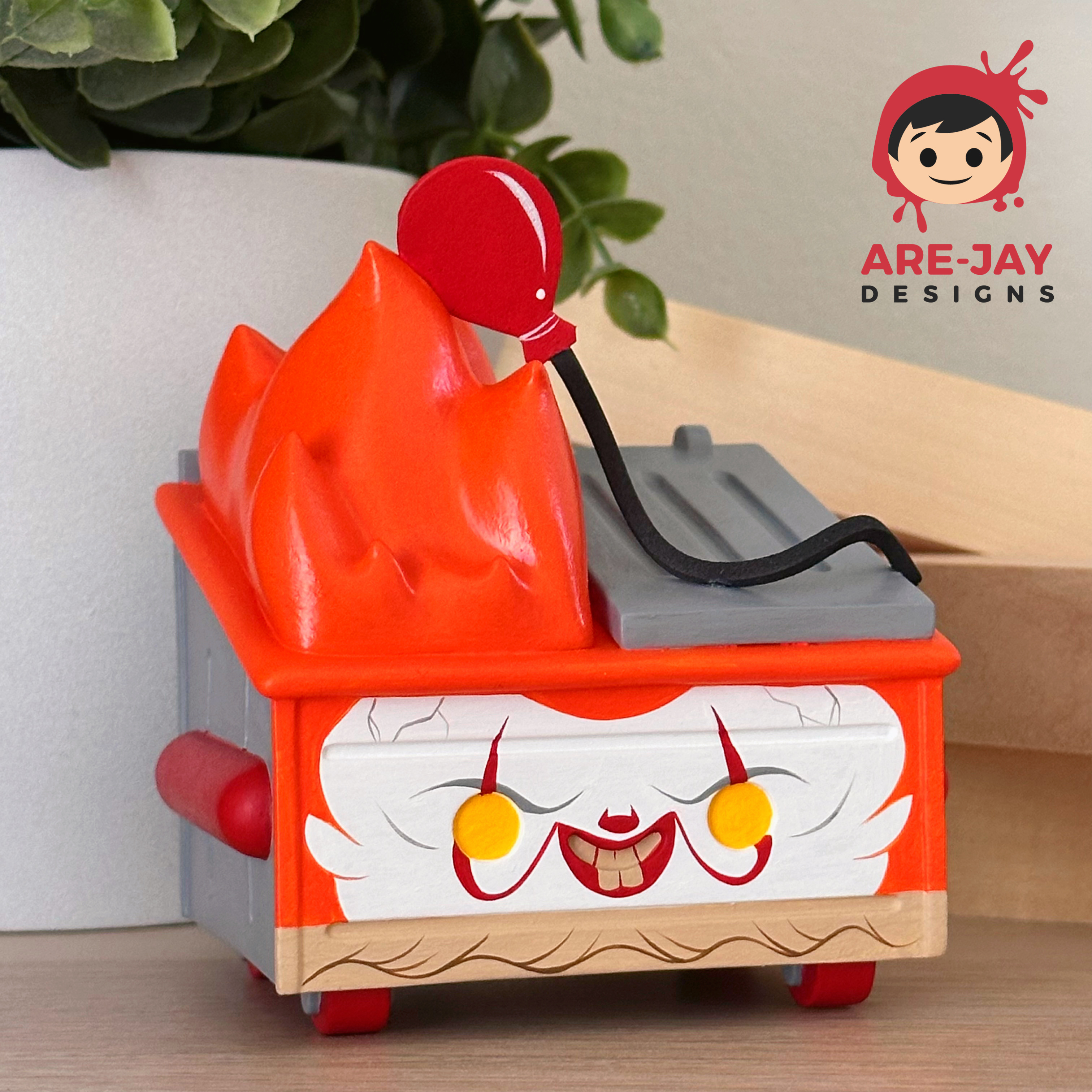 -Custom painted 100% Soft Dumpster Fire Vinyl Figure -Includes Original DIY Box w/ Are-Jay Designs Logo Sticker